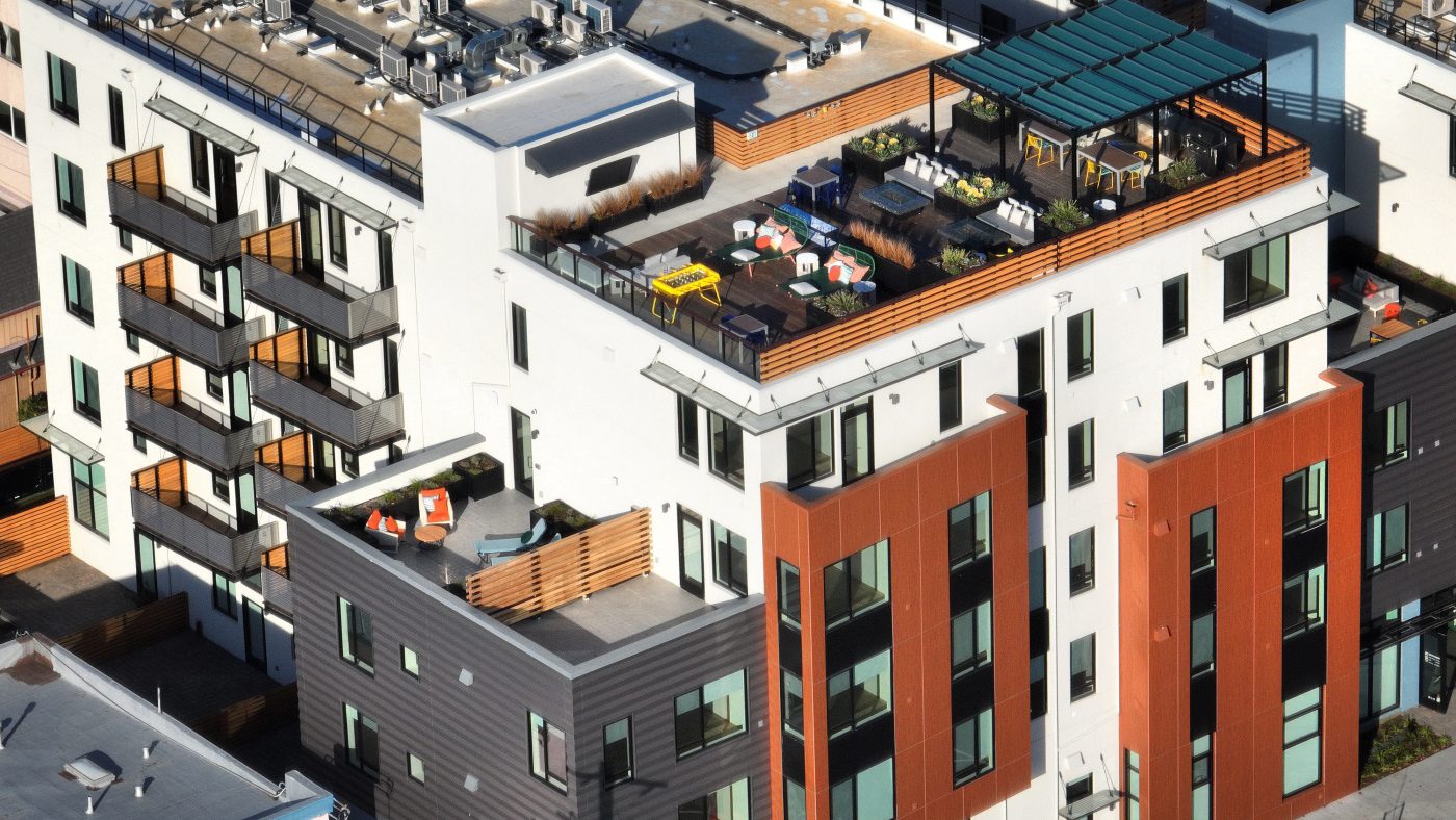 Catering to the urban renter, the Blake offers modern amenities throughout the private residences and community areas. Residences feature 11’ ceilings and oversized windows, along with private balconies, stainless steel appliances, and quartz countertops in kitchen areas. Residents can enjoy panoramic views of the San Francisco Bay and Berkeley Hills from the Blake’s three separate rooftop decks.