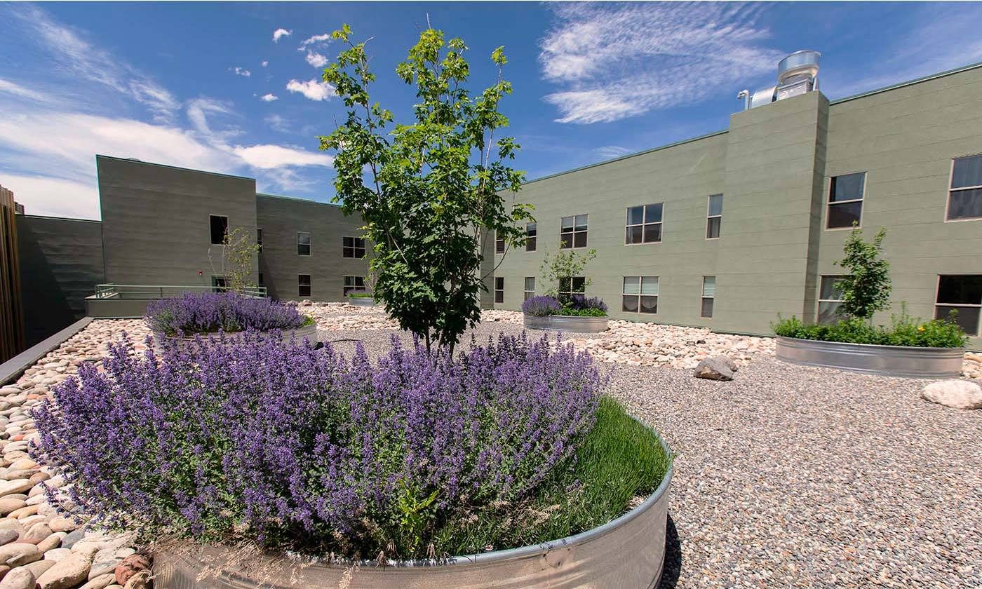 - Xeriscaped roof and green living retrofits